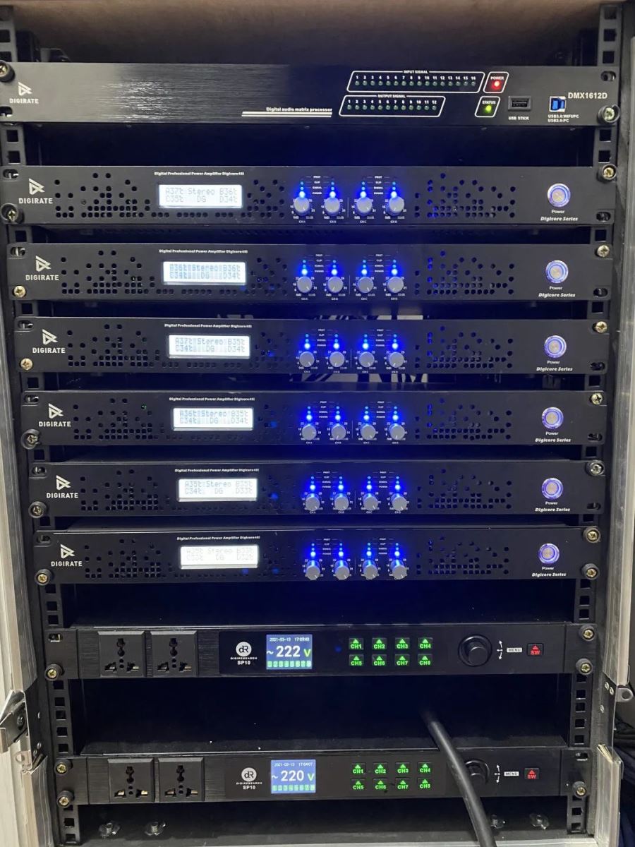 .jpg) .jpg) .jpg) 音頻處理系統(tǒng)采用了DIGIRATE(迪吉瑞)數字音頻處理器:DMX1612D系列、數字功放DIGICORE系列以及大量樂器話筒。