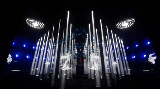 “運用基礎元素設計,賦予幾何概念生命力,隨著燈光音樂的律動,我們可以看到,新電子音樂和幾何,碰撞出一種非常別致的質感。因為幾何的線條是自由奔放的,而大廳的材質高端極致,這樣就確保了張弛有道的整體秩序。”