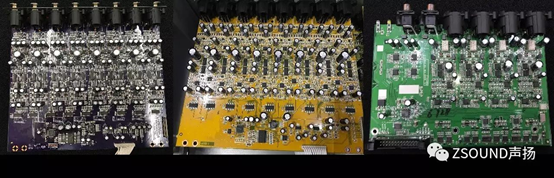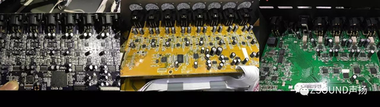 通過上述測試對比,我們可以基本判斷,在各項性能上,C的指標最高,A其次,B型號最低。這些指標對用戶的意義是什么呢?——是音質的差別,而這背后是電路設計和電路元器件的選用上差別。對于數字調音臺來說,話放的電路設計和元器件選用,A/D、D/A轉換芯片,這些很大程度上決定了其性能。入門級的調音臺為了實現大眾化的價格,往往不得不在音質和成本之間折中。我們分別將手頭的3個型號的調音臺的進行拆機,分別看看其電路設計和元器件用料。