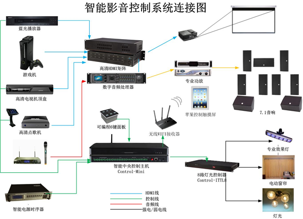 1)投影機(jī)、高清藍(lán)光播放機(jī)、點(diǎn)歌機(jī)、互動(dòng)游戲機(jī)、高清電視機(jī)頂盒、卡拉OK機(jī)、無(wú)線話筒、功放機(jī)、空調(diào)機(jī)、網(wǎng)絡(luò)路由器等等多達(dá)十幾種設(shè)備;