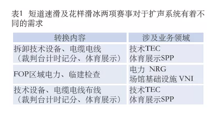 對于音頻線纜的敷設(shè),由于首都體育館初修建于1968年,管線橋架設(shè)計相對復(fù)雜繁瑣,場館1層至4層垂直橋架沒有完全貫通,4層的水平橋架也沒有聯(lián)通,大大增加了音視頻傳輸線纜敷設(shè)的難度,同時大大增加了音頻線纜的敷設(shè)長度。因此,在現(xiàn)場的音視頻插座箱與四層音控室之間,采用光纜及中繼設(shè)備進行傳輸,包括調(diào)音臺接口箱、交換機、音頻光端機等。通過數(shù)模結(jié)合的傳輸方式,解決了信號傳輸線纜過長的問題,并大大增加了信號傳輸?shù)目煽啃耘c安全性,滿足了奧運賽事期間不同賽事的需求,2022年北京冬季奧運會組委會技術(shù)組可根據(jù)不同使用場景進行切換。