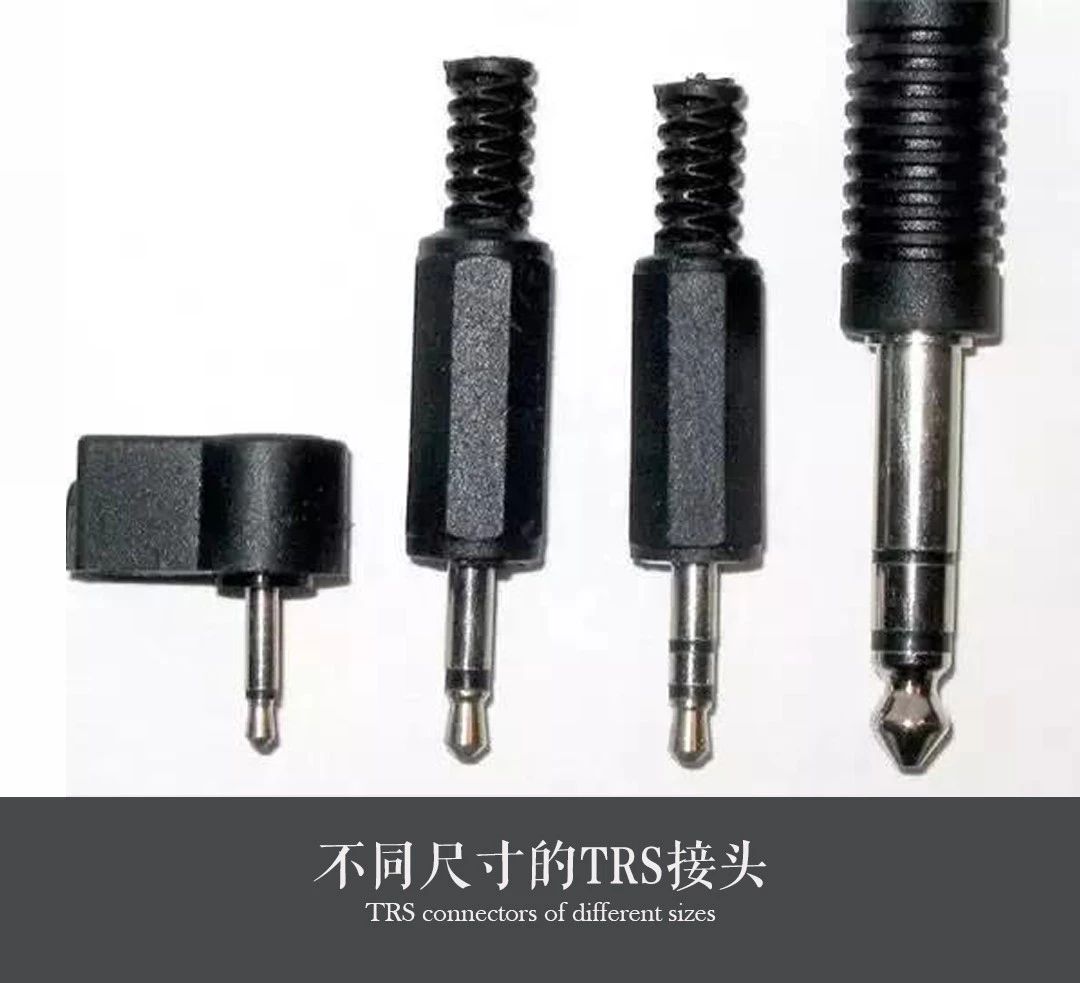其實,日常生活中我們見得最多的就是TRS接口,它的接頭外觀是圓柱體形狀,通常有三種尺寸:1/4"(6.3mm)、1/8"(3.5mm)、3/32"(2.5mm)。
