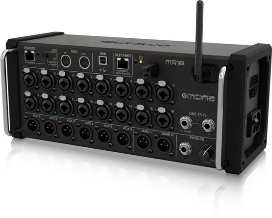 MR18集成WiFi模塊于設備內部,使用者不再需要額外增加路由器,專為便攜式所定制。這讓使用者可以專注于混音,不再為繁瑣的系統搭建而煩惱。另外,使用者可以隨時隨地的拿出其iPad等無線設備對系統進行監控。