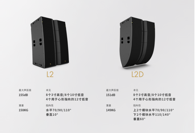 這將是全新的蛻變,這個聲音、這個構造,代表的正是我們的未來!全新的L系列揚聲器,塑造屬于未來的聲音。在未來的應用中,L系列將是許多租賃和固定安裝應用的理想解決方案,尤其是那些對音質、空間、重量、安裝速度或反饋前的增益有著苛刻要求的項目。L系列可以滿足非常多的項目和應用,無論是單聲道、立體聲還是L-ISA系統。L2和L2D既可以單獨使用,也可以搭配KS28超低揚聲器以擴展低頻下限。