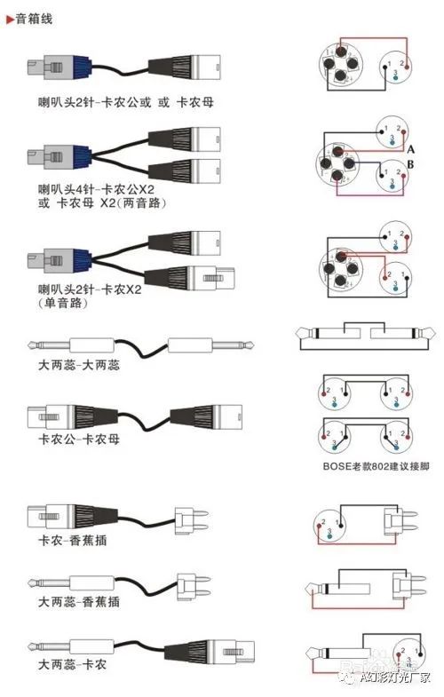 | 專業舞臺燈光音響設備信號線各種接頭接線方式 |