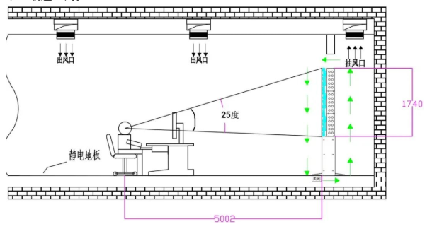 2) 位于大屏幕顯示系統(tǒng)維修通道內(nèi)的空調(diào)(中央空調(diào)或柜式空調(diào)),其出風(fēng)口位置應(yīng)盡量遠(yuǎn)離后側(cè)箱體,并且出風(fēng)口的冷風(fēng)絕對(duì)不能對(duì)著屏幕直吹,要朝遠(yuǎn)離屏幕的方向吹,以避免屏幕冷熱不均勻而損壞和結(jié)露現(xiàn)象。