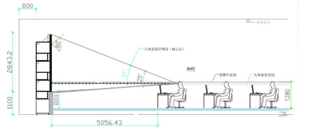 人眼的水平視線與投影屏幕垂直可獲得最佳的屏幕觀看效果,對(duì)于拼接大屏以最底一層屏幕的中位線作為基準(zhǔn)。人體坐姿水平視線的高度一般為1.28米左右,讓拼接大屏最底一層屏幕的中位線距地面盡量接近這個(gè)高度為宜。