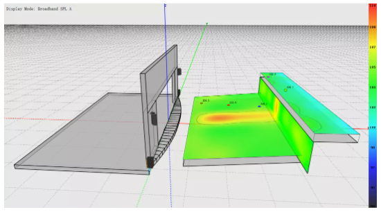 值得一提的是,這次春晚的舞臺是非常干凈的,無論是模擬預測,還是實地測量,都顯示出主擴系統對舞臺是幾乎沒有干擾的,聲壓級小且直達聲少,并且最終的實際聽感,主擴系統對舞臺的不良串音是極其微小的。