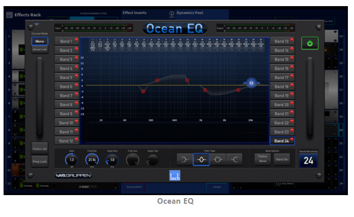 不僅如此,HD96-24還有著諸多強大且便捷的功能,在處理現(xiàn)場音頻時大顯身手。例如,使用了AUTOMIX自動混音來管理話筒音量;使用PIE擴展器,能對話筒聲音信號進行有效的降噪;還有使用內(nèi)置Lake處理器強大EQ處理算法的Ocean EQ,進行觀眾區(qū)擴聲的系統(tǒng)優(yōu)化等等。