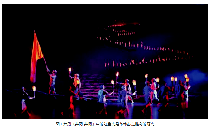 燈光是舞臺畫面的重要組成部分,是舞臺畫面的最后呈現者。有人把燈光叫作“舞臺上的畫筆”。所以,燈光這支“畫筆”在描繪舞臺畫面上一定要“留白”。這里的“留白”包含著光束、光位、光區和投光范圍等,和國畫中的“留白”有所區別。