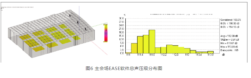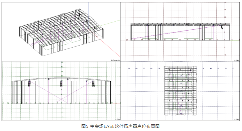為驗證擴聲系統可行性,筆者對主會場做了EASE聲場模擬,如圖4、圖5、圖6所示,滿足設計目標。