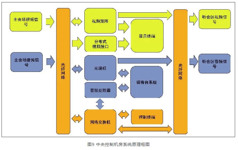 主會場本地的音視頻信號匯總至中央控制機房。