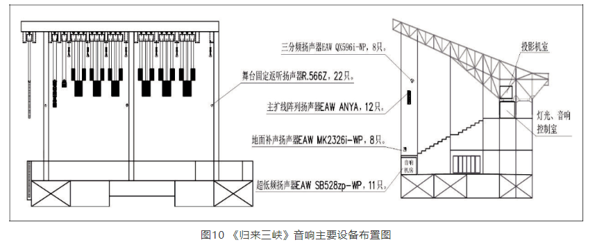 時間碼+事件觸發+必要的人工控制,劇情較簡單,多數節目無演員參加。某些節目會有演員參加表演,但不講不唱,不用傳聲器,呈現的音樂、人聲和環境聲等聽覺效果都是采用“先預錄,后重放”的方式,聲、光、像要求同步,演員配合動作和對口型。這是目前國內聲光秀較為普遍采用的控制模式。本文將論述此種模式的特點、系統集成和工程案例。