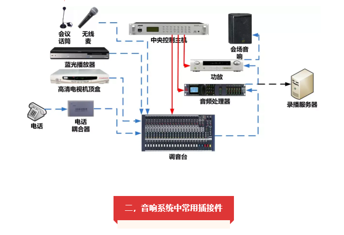 由于大部分用在擴聲工程上的音源設(shè)備,本身輸出端采用非平衡式輸出,比如蓮花式輸入插座或大二芯插座,所以非平衡式連接只適合在距離較近的情況下用于音源設(shè)備與調(diào)音臺之間的連接。