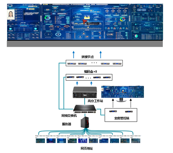 威創(chuàng)將自主可控的可視化應(yīng)用、萬(wàn)顯軟件等進(jìn)行深度融合,推出獨(dú)有的多應(yīng)用“OneFrame” 引擎顯示技術(shù),實(shí)時(shí)將數(shù)十個(gè)WEB頁(yè)在一臺(tái)高分桌面同步開(kāi)窗顯示,達(dá)到單一高分應(yīng)用的同步切換效果,多個(gè)場(chǎng)景間切換時(shí)間小于1S;不用重新開(kāi)發(fā)頁(yè)面,利用用戶可視化監(jiān)視、BI系統(tǒng)、大數(shù)據(jù)展示系統(tǒng)等海量頁(yè)面組合成高分場(chǎng)景展示,具有顯示效果好,場(chǎng)景制作快,投入成本低的優(yōu)勢(shì);網(wǎng)頁(yè)URL直接訪問(wèn),智能動(dòng)態(tài)分辨率,靈活布局,一鍵調(diào)用,無(wú)需增加硬件來(lái)增加畫(huà)面數(shù)量,減少硬件成本,無(wú)接入頁(yè)面數(shù)量限制。為新一代智能指揮控制中心的高分可視化應(yīng)用與傳控系統(tǒng)的有效結(jié)合提供了綜合解決方案。